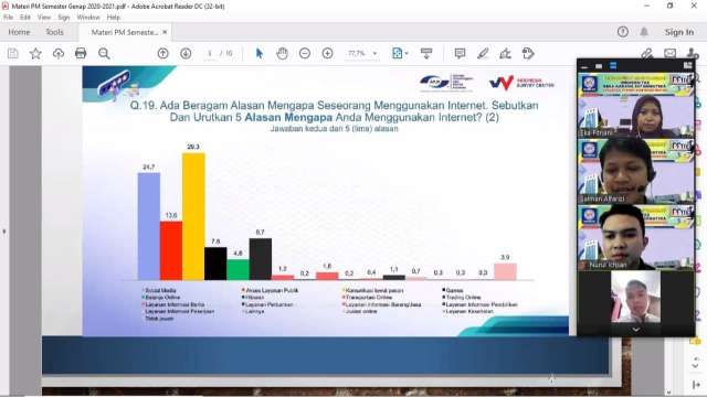 Ketua pelaksana kegiatan ini, Walim, M.Kom bersama dengan anggota Nurul Ichsan, M.Kom, Salman Alfarizi, M.Kom dan Eka Fitriani, M.Kom serta dua mahasiswa yang membantu melaksanakan kegiatan ini secara daring.