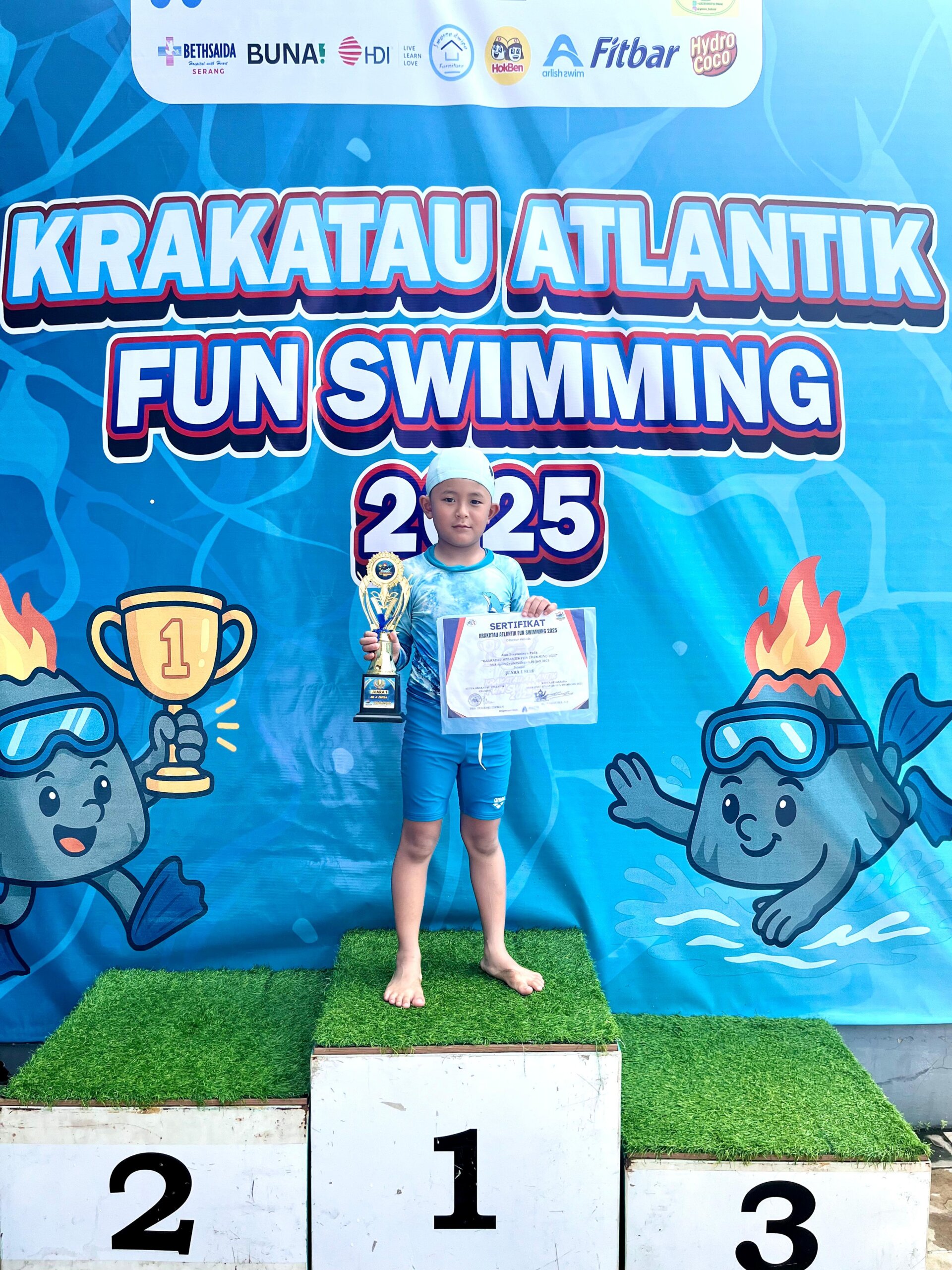 Milenianews.com, Cilegon– Prestasi membanggakan kembali diraih oleh siswa SD Bosowa Al Azhar. Kali ini, Kailash Afkari Arnawama, siswa kelas 2B, berhasil menyabet Juara 1 Seri 25 Meter Gaya Bebas KU Putra dalam ajang bergengsi Krakatau Atlantik Swimming 2025 tingkat nasional.
