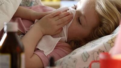 Kemudian, terdapat gejala paling sering terjadi namun jarang dialami pasien flu, yaitu masalah tenggorokan gatal.