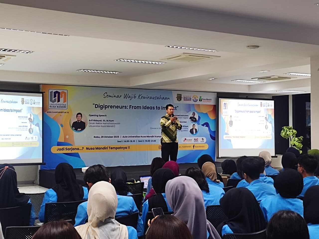 Milenianews.com, Jakarta – Semangat kewirausahaan menjadi fokus utama dalam kegiatan motivasi mahasiswa yang digelar Universitas Nusa Mandiri (UNM) di Aula UNM kampus Jatiwaringin, Jakarta Timur, pada Kamis (29/10). Acara ini dihadiri langsung oleh Wakil Rektor Bidang Non Akademik UNM, Arif Hidayat, bersama jajaran pimpinan kampus, panitia, serta ratusan mahasiswa dari berbagai program studi.