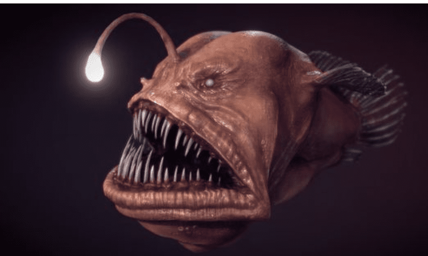 Angler Fish adalah makhluk laut yang terkenal berkat kesuksesan film Finding Nemo. Ini adalah makhluk yang cukup terkenal yang cukup khas karena cahaya yang menonjol dari kepalanya. Ia memiliki bentuk tubuh yang tidak biasa dan gigi yang tajam. Betina biasanya tumbuh sekitar 8 inci, dan jantan hanya sepanjang satu inci. Jantan menyatukan diri dengan betina, mengubah dua individu menjadi satu.