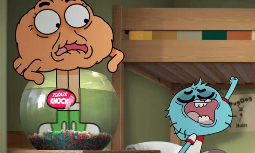 Dalam cuplikan tersebut, Gumball—kucing biru nakal yang menjadi tokoh utama—terlihat terbangun dari tidur panjang selama tujuh tahun. Penuh debu dan kebingungan, ia memanggil Darwin, ikan peliharaannya yang tiba-tiba muncul dari akuarium kotor.