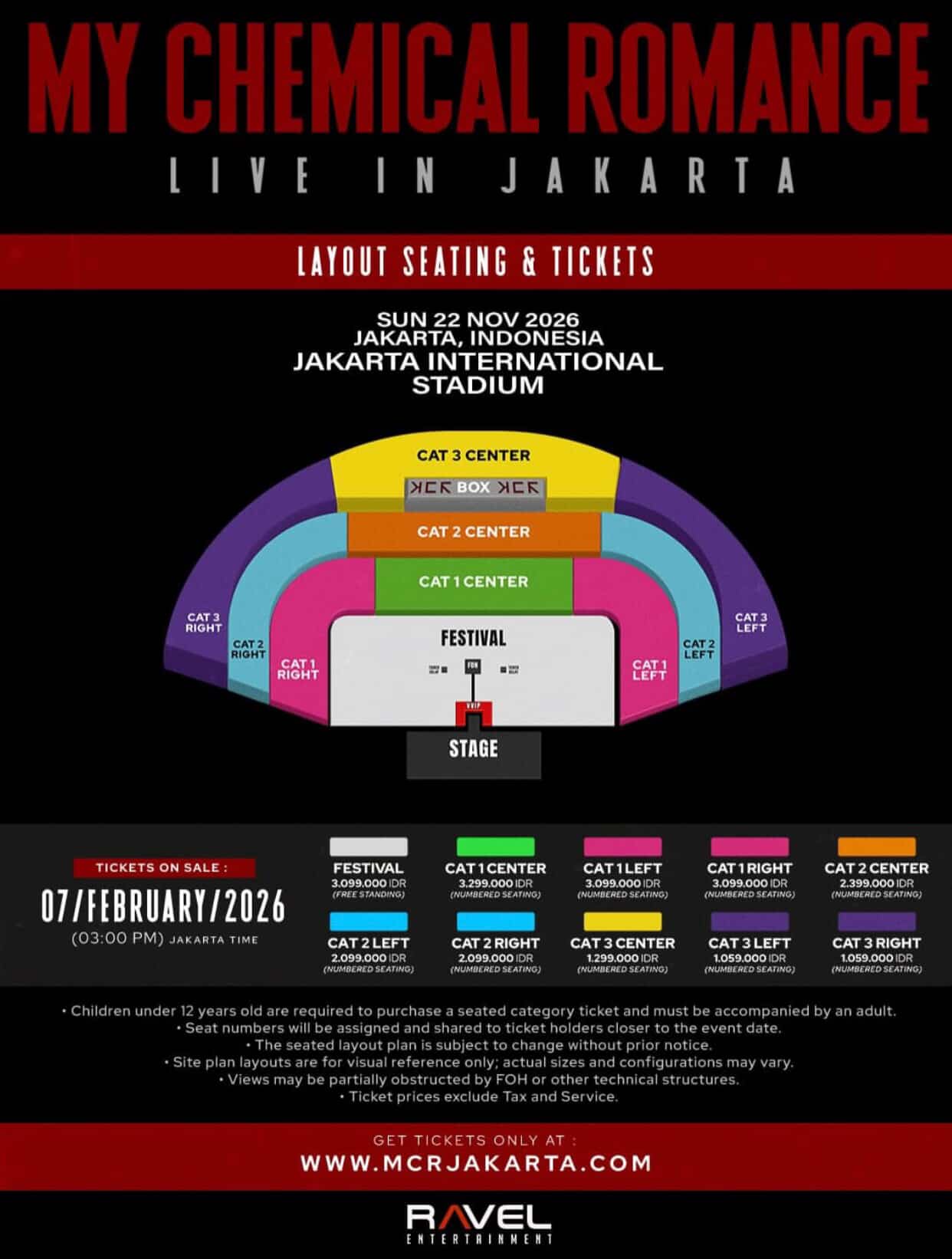 Penjualan tiket dimulai pada 7 Februari 2026 pukul 15.00 WIB melalui situs resmi www.mcrjakarta.com. Kategorinya beragam, dari Festival (free standing) hingga VVIP, dengan harga mulai Rp 1.059.000. Harga yang, bagi sebagian orang, mungkin terasa seperti investasi emosional jangka panjang.