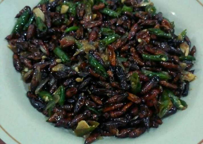 Ulat Jati goreng ini memiliki aroma khas daun jati. Setelah digoreng dengan bumbu Ulat Jati siap disantap dengan nasi putih hangat. (Ummi)