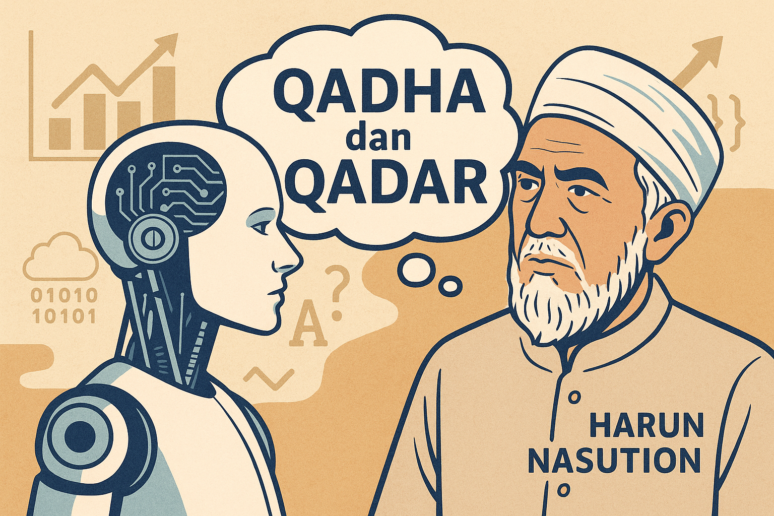 Pertanyaan itu menuntun kita kepada dua konsep klasik dalam teologi Islam—qadha dan qadar. Dua istilah ini, meski sering didengar, tetap menjadi misteri dalam keseharian umat. Terlebih di era di mana manusia mulai menyerahkan banyak keputusan pada mesin. Bagaimana kita memaknai qadha dan qadar dalam konteks digital dan algoritma? Di sinilah pemikiran Harun Nasution kembali relevan untuk dikaji.
