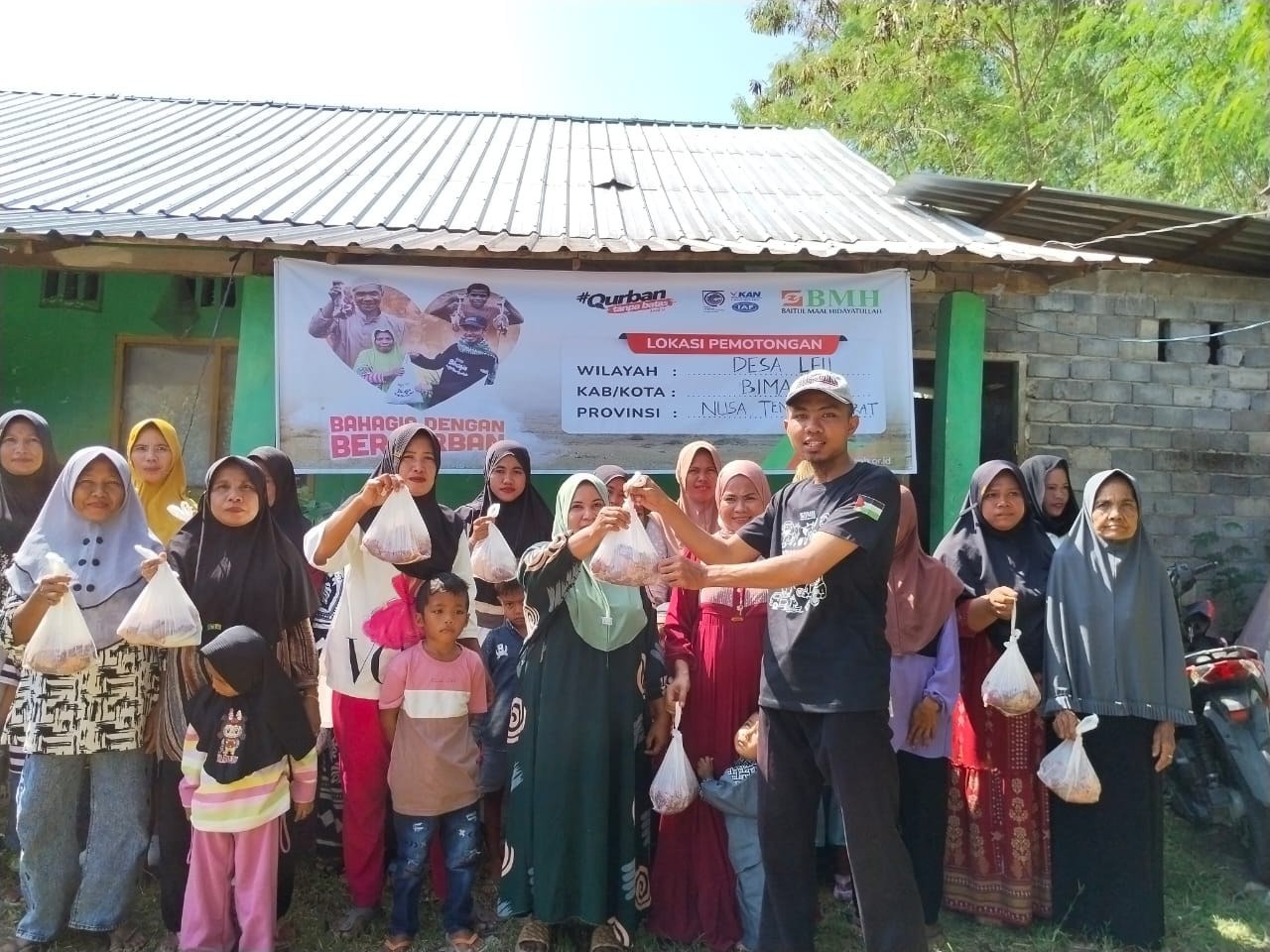 Laznas BMH ULZ (Unit Layanan Zakat) Bima, tepat di Hari Raya Idul Adha 10 Dzulhijjah, menebar kebahagiaan dengan menyalurkan daging kurban kepada 160 kepala keluarga (KK).