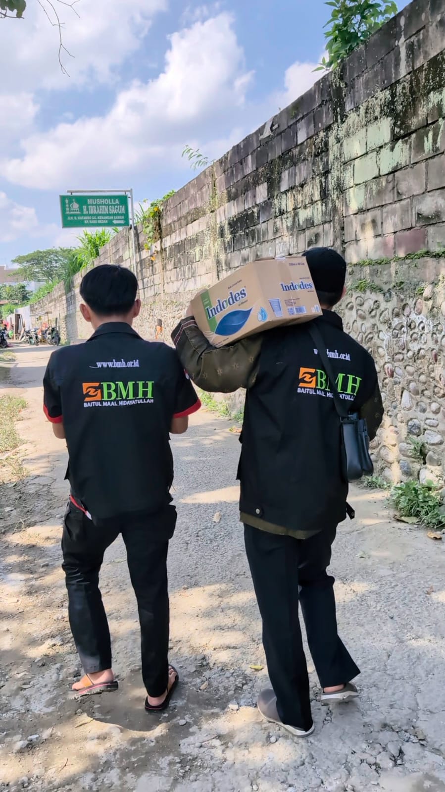 Dalam pergerakannya, armada BMH tertahan di lorong jalan karena disisi jalan banyak terparkir becak, sarana untuk mengangkut jualan warga yang sengaja ditempatkan disitu agar terhindar darii banjir. Akhirnya terpaksa nasi bungkus dan air mineral dilangsir dengan menggunakan sepeda motor warga dan sebagian dibawa dengan berjalan kaki.