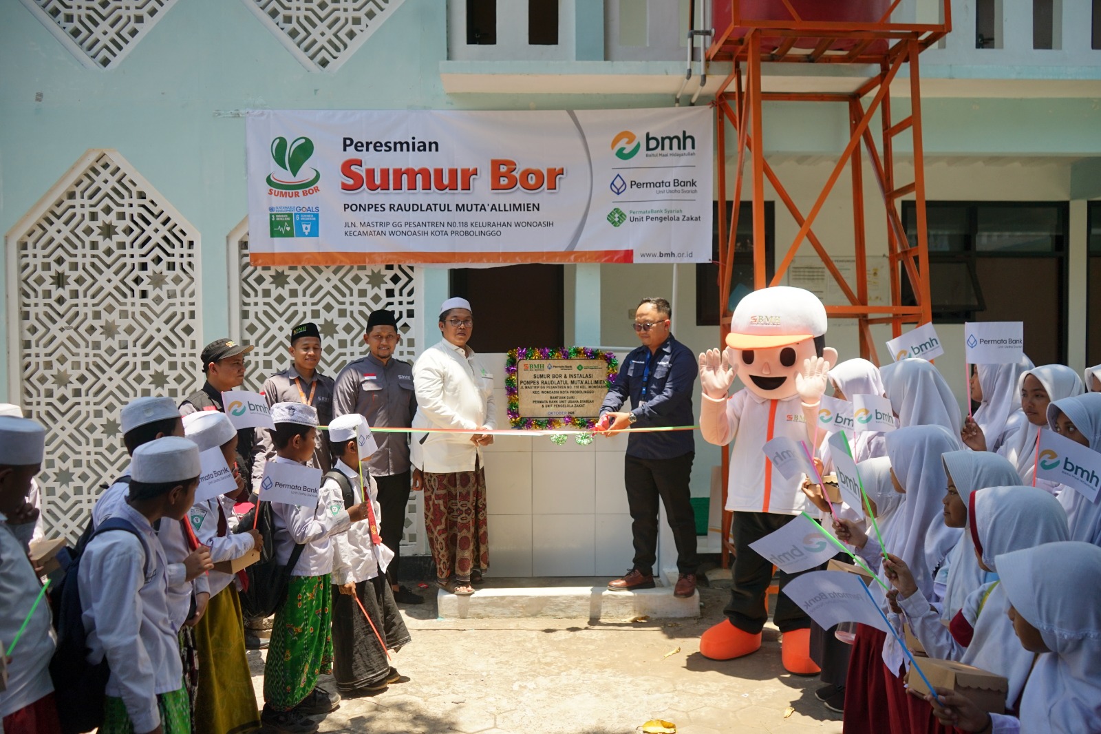 Laznas BMH bersama Permata Bank Unit Usaha Syariah dan UPZ resmi meresmikan sumur bor ke-228 di Jawa Timur,  berlokasi di Pondok Pesantren Raudlatul Mutaallimien, Probolinggo, Selasa (7/10/2025). (Foto: Dok BMH)