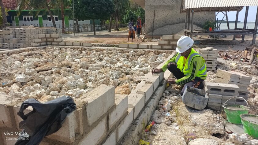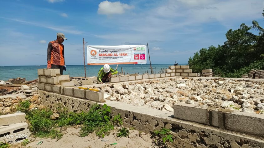 Laznas BMH terus bergerak cepat membangun Masjid Al Isra yang berlokasi di Pulau Saobi, salah satu pulau kecil di Kabupaten Sumenep, Jawa Timur. (Foto: Dok BMH)