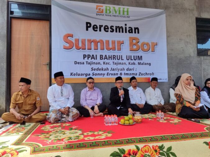 Keluarga Bapak Sonny Ervan dan Ibu Imama Zahroh berkolaborasi dengan Lembaga Amil Zakat Nasional BMH menghadirkan sumur bor ke-219 di Jawa Timur, tepatnya di Pondok Pesantren PPAI Bahrul Ulum, Desa Tajinan, Malang. (Foto: Dok BMH)