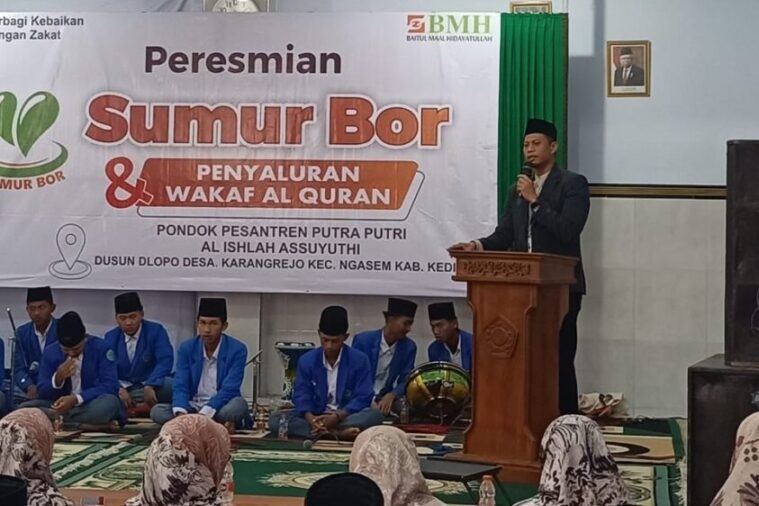 Milenianews.com, Kediri– Baitul Maal Hidayatullah (BMH) meresmikan sumur bor ke-174 di Jawa Timur. Sumur bor ini berlokasi di Pondok Pesantren Al Ishlah As Suyuthi, Karangrejo, Kecamatan Ngasem, Kabupaten Kediri.