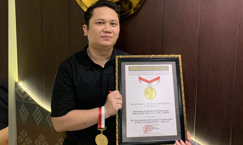 Hal ini yang membuatnya menerima penghargaan dari Museum Rekor-Dunia Indonesia (MURI) dengan tajuk “The First Indonesian who becomes an Associate Editor of Heliyon Psychology (Elsevier – Scopus Q1)”, pada 3 April 2023 waktu lalu.