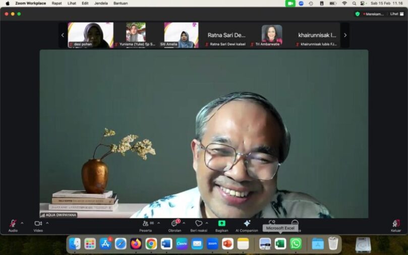 Pakar komunikasi dan motivator nasional Dr. Aqua Dwipayana menjadi narasumber webinar “Bersama, Kita Kuatkan Organisasi Jurnalis Perempuan” yang  diadakan oleh Forum Jurnalis Perempuan Indonesia (FJPI), Sabtu (15/2/2025). (Foto: Istimewa)