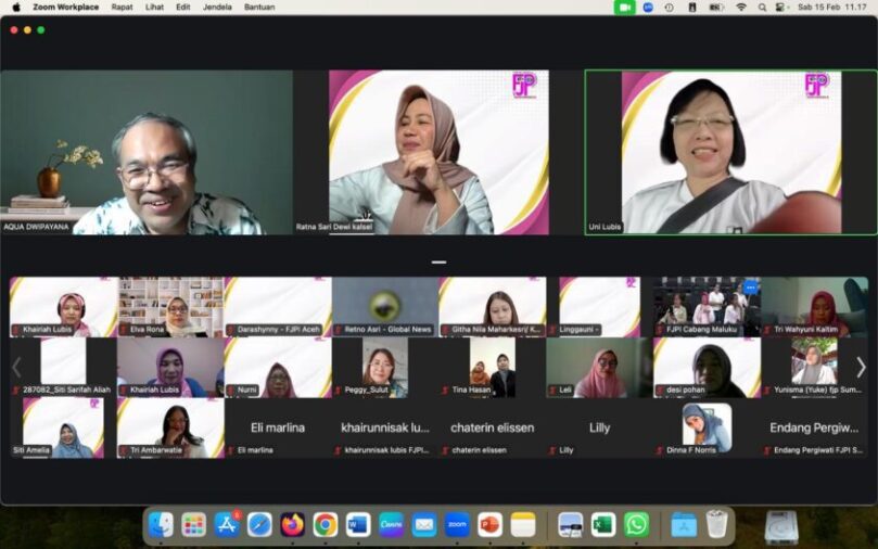 Milenianews.com, Jakarta—Pakar komunikasi dan motivator nasional Dr. Aqua Dwipayana menjadi narasumber webinar “Bersama, Kita Kuatkan Organisasi Jurnalis Perempuan”.  Webinar itu diadakan oleh Forum Jurnalis Perempuan Indonesia (FJPI), Sabtu (15/2/2025), dan diikuti oleh sekitar 300 jurnalis perempuan.