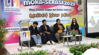 Milenianews.com, Depok – Awal perkuliahan menjadi langkah penting bagi mahasiswa baru (maba) dalam menapaki dunia kampus. Dalam kegiatan MOKA-SERASI Gelombang Khusus 2025 Universitas Nusa Mandiri (UNM) yang diselenggarakan di UNM kampus Margonda, Depok pada Senin (6/10), Ketua Program Studi (Kaprodi) Sains Data UNM, Tati Mardiana memberikan pesan inspiratifnya kepada para maba agar siap menghadapi tantangan di dunia perkuliahan.
