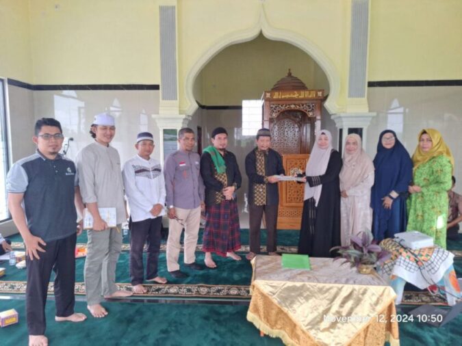 Serah terima dokumen objek wakaf dari muwakif ke Hidayatullah dilakukan langsung oleh Ibu Anita kepada Ketua DPW Hidayatullah Sumatera Utara, Ust. Subur Pramudya di Masid Pin Al Mashri, Selasa (12/11/2024).