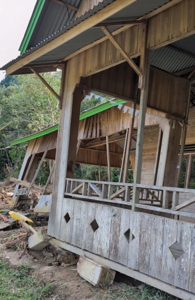 Setelah melewati rentetan rintangan fisik dan psikologis tersebut, tim akhirnya mendarat di Pondok Pesantren Darul Marifah. Lokasi binaan ini terdampak cukup parah.