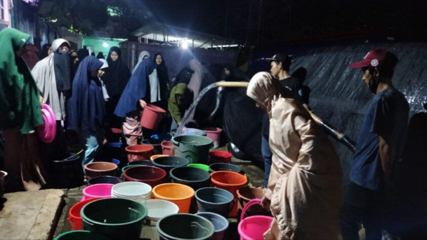 BMH menyalurkan 16.000 liter air bersih untuk pesantren dan warga sekitar Rumah Qur'an Umar bin Khattab, Bojong, Kemang, Kabupaten Bogor,  Jumat (13/10/2023). (Foto: Dok BMH)