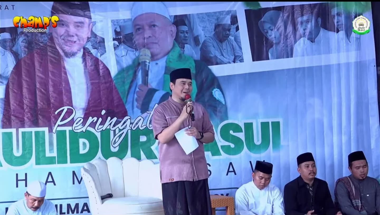 Majelis Taklim Nurul Hidayah, Desa Babakan, Kecamatan Cilebut Barat, Kabupaten Bogor menggelar Tabligh Akbar dalam rangka memperingati maulid Nabi Muhammad SAW, dengan mengundang narasumber A Hilman, Jumat (28/11/2025). (Foto: Istimewa)