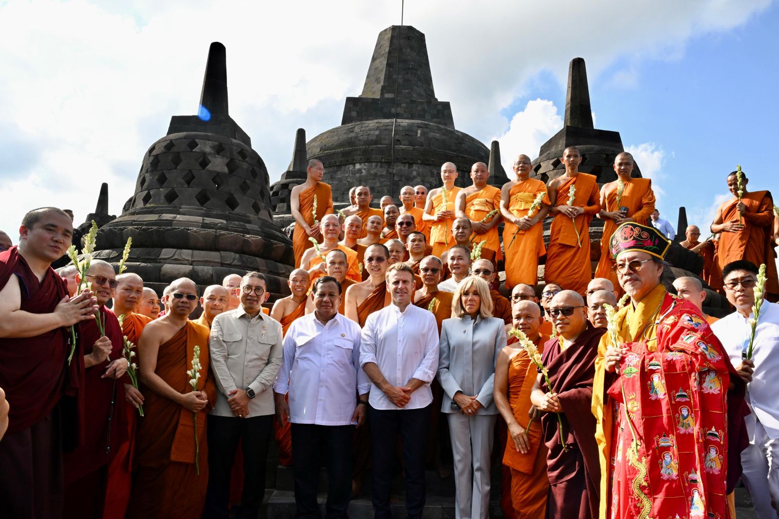 Presiden Macron menyampaikan kekagumannya terhadap Borobudur sebagai lambang kejayaan artistik dan spiritual Indonesia. “Borobudur bukan sekadar monumen, tetapi adikarya peradaban, simbol multikulturalisme, dan pesan universal toleransi. Saya sangat bangga karena di sinilah, dengan penuh rasa hormat, kami meluncurkan kemitraan budaya strategis antara Indonesia dan Prancis,” ujar Macron.