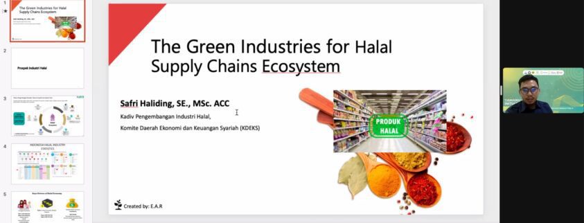 Safri Haliding, M.Sc.Acc selaku Kadiv Pengembangan Ekosistem Halal Industri Halal KDEKS Pemprov Sumsel yang juga menjadi salah satu narasumber menyampaikan bahwa apabila dilihat dari produk olahan tamanu maka dapat dikategorikan ke dalam dua jenis halal ecosystem yaitu halal tourism dan halal cosmetic. Halal industri memastikan bahwa suatu produk dikategorikan halal sejak dari proses budidaya, pengadaan bahan baku, proses produksi, proses distribusi, hingga pemasaran. Keuntungan menggunakan produk dengan sertifikasi halal adalah adanya jaminan produk yang sehat, baik, dan higienis.