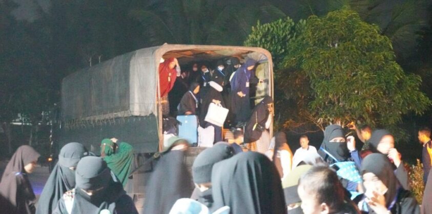 Peserta kafilah putri Silatnas Hidayatullah 2023 asal Papua Barat, Papua Barat Daya, dan Maluku Utara tiba di Pondok Pesantren Hidayatullah  Balikpapan, Rabu (15/11/2023) dini hari. (Foto: Dok Hidayatullah)