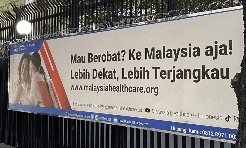 Milenianews.com, Jakarta – Sebuah poster promosi pengobatan ke Malaysia yang viral baru-baru ini, menarik perhatian publik. Terutama karena letaknya dekat dengan Kedutaan Besar Malaysia dan Kementerian Kesehatan RI. Foto poster tersebut diunggah oleh seorang netizen yang menganggapnya sebagai sindiran terhadap pelayanan kesehatan di Indonesia.