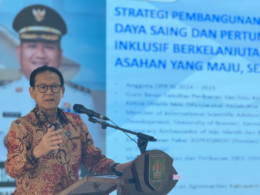 Milenianews.com, Asahan– Anggota DPR RI 2024 – 2029 yang juga Guru Besar Fakultas Perikanan dan Ilmu Kelautan – IPB University, Prof. Dr. Ir. Rokhmin Dahuri MS menjadi narasumber FGD Pembangunan Agromaritim Kabupaten Asahan yang digelar di Kantor Bupati Asahan, Sabtu (12/4/2025). Ia membawakan makalah berjudul “Strategi Pembangunan untuk Meningkatkan Daya Saing Pertumbuhan Ekonomi Insklusif Berkelanjutan Menuju Kabupaten Asahan yang Maju, Sejahtera dan Mandiri”.