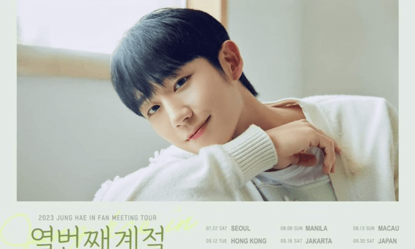 “2023 Jung Hae In Fan Meeting ’10th season’ tour information,” tulis agensi pada akun instagramnya.