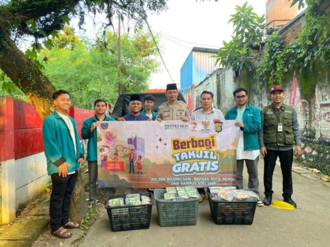 Kegiatan bagi-bagi takjil ini merupakan hasil kolaborasi antara BAZNAS Depok, Polsek Bojongsari dan Kampus SEBI. Ada 230 paket takjil yang dibagikan gratis.