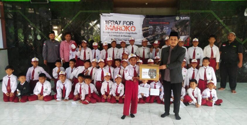 Laznas BMH bersama beberapa sekolah di Jawa Timur menggalang donasi peduli Gempa Maroko. Salah satunya di SD Integral Lukman Al-Hakim Lumajang, pada Selasa (19/9/2023).