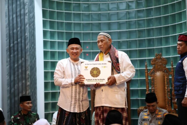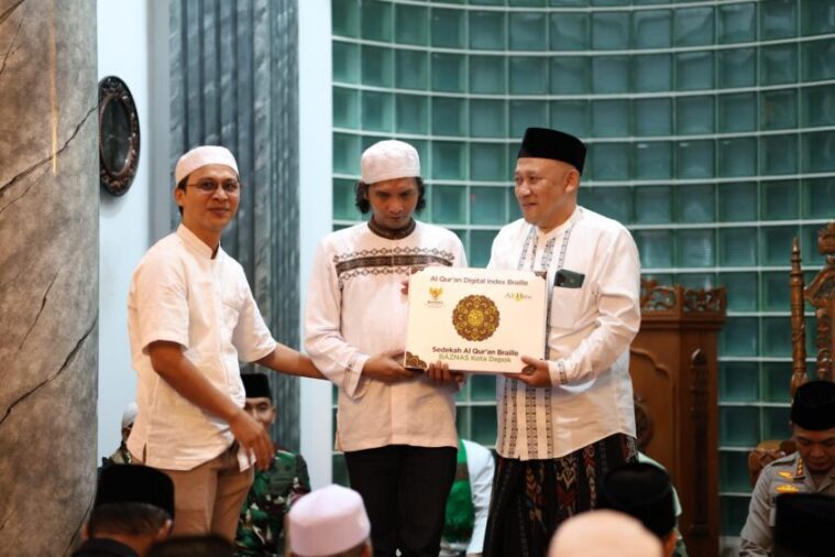Milenianews.com, Depok– Badan Amil Zakat (Baznas) Kota Depok terus berkomitmen memberdayakan umat, termasuk mereka yang menghadapi keterbatasan fisik dan mental. Melalui program “Sedekah Al-Qur’an Braile”, Baznas Depok menyalurkan bantuan berupa Al-Qur’an braille kepada Bapak Nurullah & Rio,  penyandang tuna netra. Penyerahan bantuan dilakukan pada saat Tarawih keliling di Masjid Jami Baiturrahim, Depok,  disaksikan langsung oleh Wali Kota Depok Supian Suri,  Sabtu, (17/03/25)