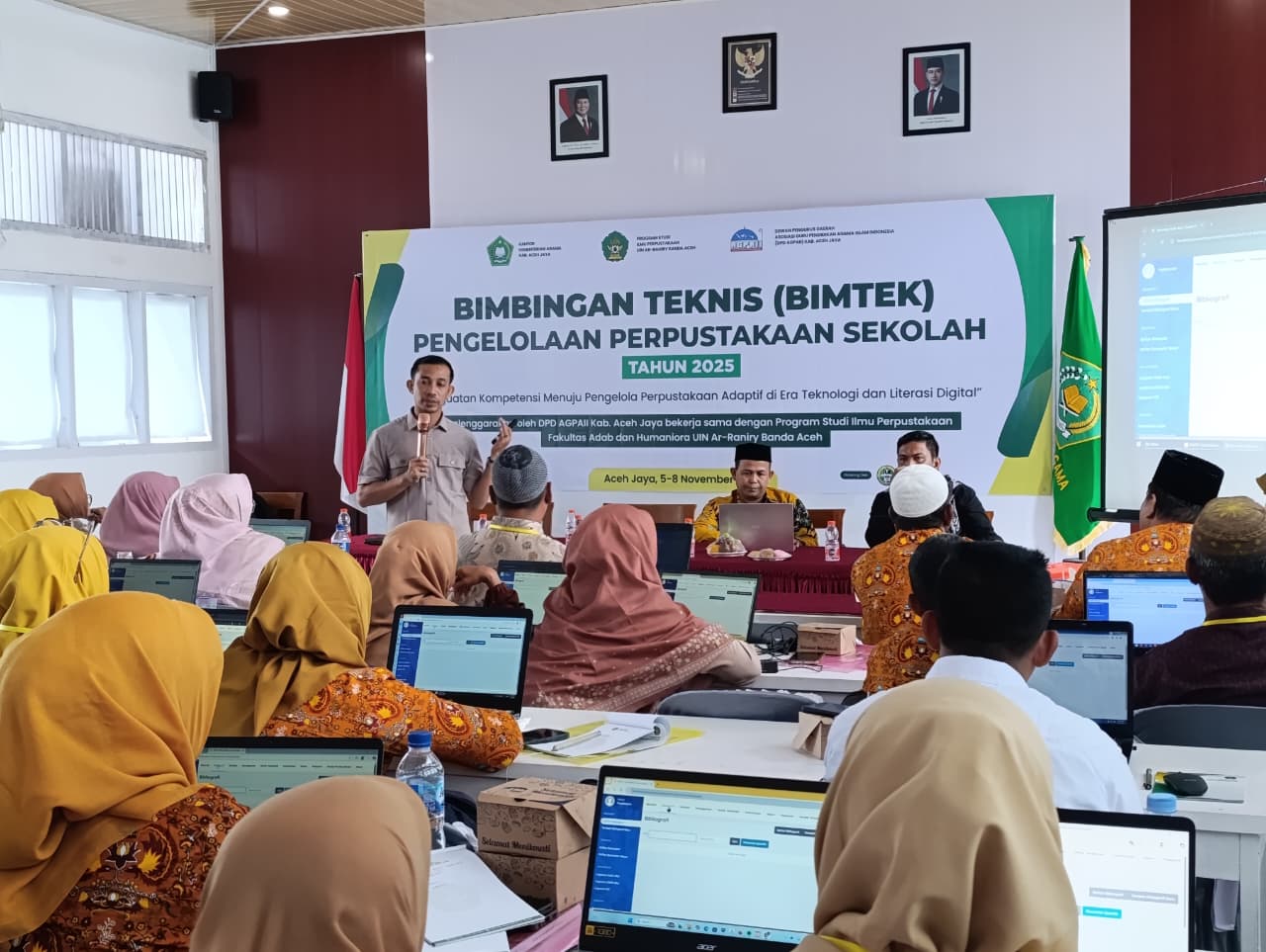 Kegiatan tersebut merupakan hasil kerja sama antara DPD Asosiasi Guru Pendidikan Agama Islam Indonesia (AGPAII) Aceh Jaya dengan Program Studi Ilmu Perpustakaan Fakultas Adab dan Humaniora (FAH) UIN Ar-Raniry Banda Aceh.