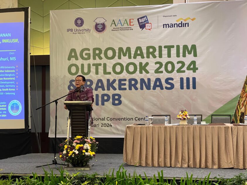 Milenianews.com, Bogor– Guru Besar Fakultas Perikanan dan Ilmu Kelautan-IPB University, Prof. Dr. Ir. Rokhmin Dahuri, MS menjadi salah satu narasumber Agromaritim Outlook 2024 dan Rakernas III HA-IPB. Acara yang mengusung tema “Akselerasi Kedaulatan Agromaritim dari Berbagai Daerah di Nusantara” itu diadakan oleh Dewan Pimpinan Pusat HA-IPB, di Bogor, 27-28 Februari 2024.