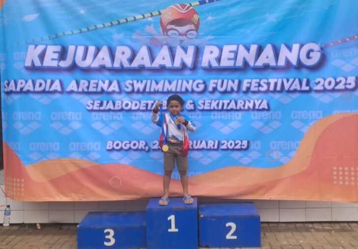 Milenianews.com, Depok– Ananda Kahfi Pradipta Nugroho, siswa TK B2 (Nymphea) mengikuti lomba renang tingkat sekolah/club yang berlokasi di daerah Parung Bogor, Kejuaraan Renang Sapadia Arena Swimming Fun Fastifal, pada  25 February 2025.