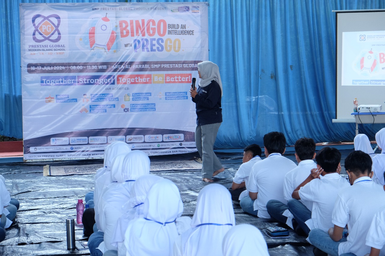 SMP Prestasi Global-Depok menyambut para calon siswa-siswi baru dengan kegiatan “BINGO (Build an Intellegence) with Presgo: Be Brave, Be Bright, Be You”, Selasa dan Rabu, 15–16 Juli 2025. (Foto: Dok PresGo)