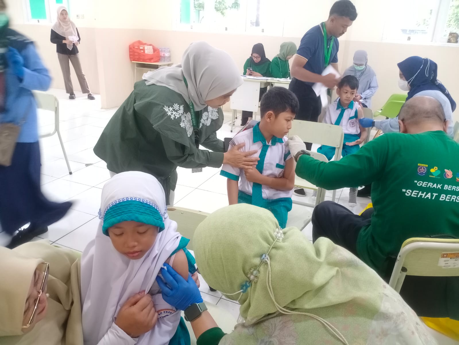 Siswa kelas 1 mendapatkan imunisasi DT (Disentri Tetanus), sementara siswa kelas 2–5 diberikan imunisasi TD (Tetanus Difteri) sebagai upaya perlindungan kesehatan jangka panjang.