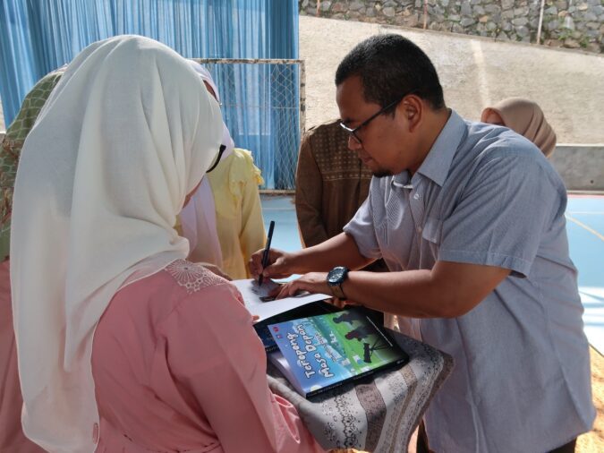 Secara simbolis, Direktur Sekolah Prestasi Global-Depok, Ahmad  Faisal  melakukan penandatanganan buku sebagai tanda resmi peluncuran karya inspiratif ini.
