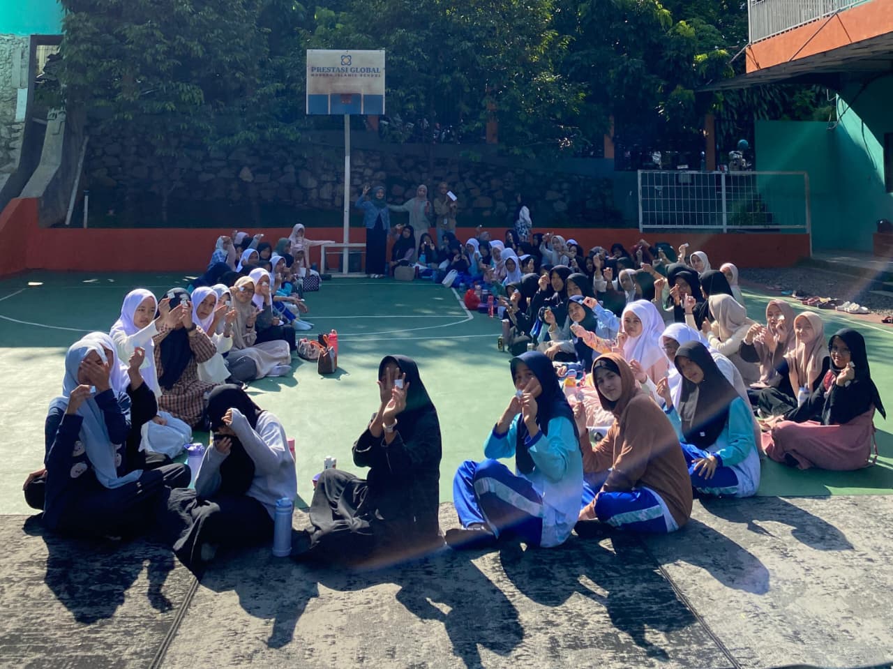 SMP Prestasi Global-Depok menggelar kegiatan Sarapan Bersama dan Pemberian Tablet Tambah Darah (TTD) di Lapangan Al Farabi,  Jumat (15/8/2025). (Foto: Dok PresGo)