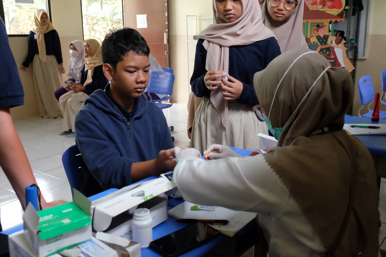 Milenianews.com, Depok– SMP Prestasi Global (PresGo), sebuah sekolah di Depok dengan visi Modern Islamic School, mengadakan kegiatan Cek Kesehatan Gratis (CKG) pada Kamis, 11 September 2025 di Multiroom SMP PresGo. Kegiatan ini diikuti oleh seluruh siswa kelas 7 hingga 9 dengan dukungan 13 tenaga kesehatan dari Puskesmas setempat. Pemeriksaan yang dilakukan meliputi tensi, pemeriksaan mata, telinga, mulut, serta pemeriksaan Hb dan GDS khusus untuk siswa kelas 7.