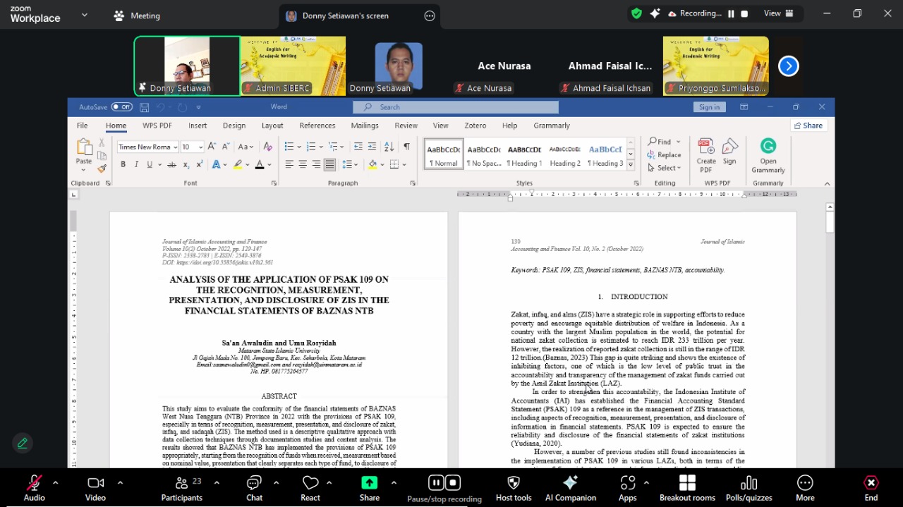 Secara keseluruhan, pelatihan ini bukan sekadar transfer ilmu, tetapi bentuk nyata dukungan institusi dalam membangun budaya akademik yang profesional, modern, dan adaptif terhadap perkembangan teknologi. Melalui pendekatan yang praktis, berdasar pengalaman, dan memanfaatkan AI secara bertanggung jawab, kegiatan ini berhasil menjadikan proses menulis artikel ilmiah terasa lebih ringan, lebih percaya diri, dan lebih dekat dengan standar publikasi internasional.