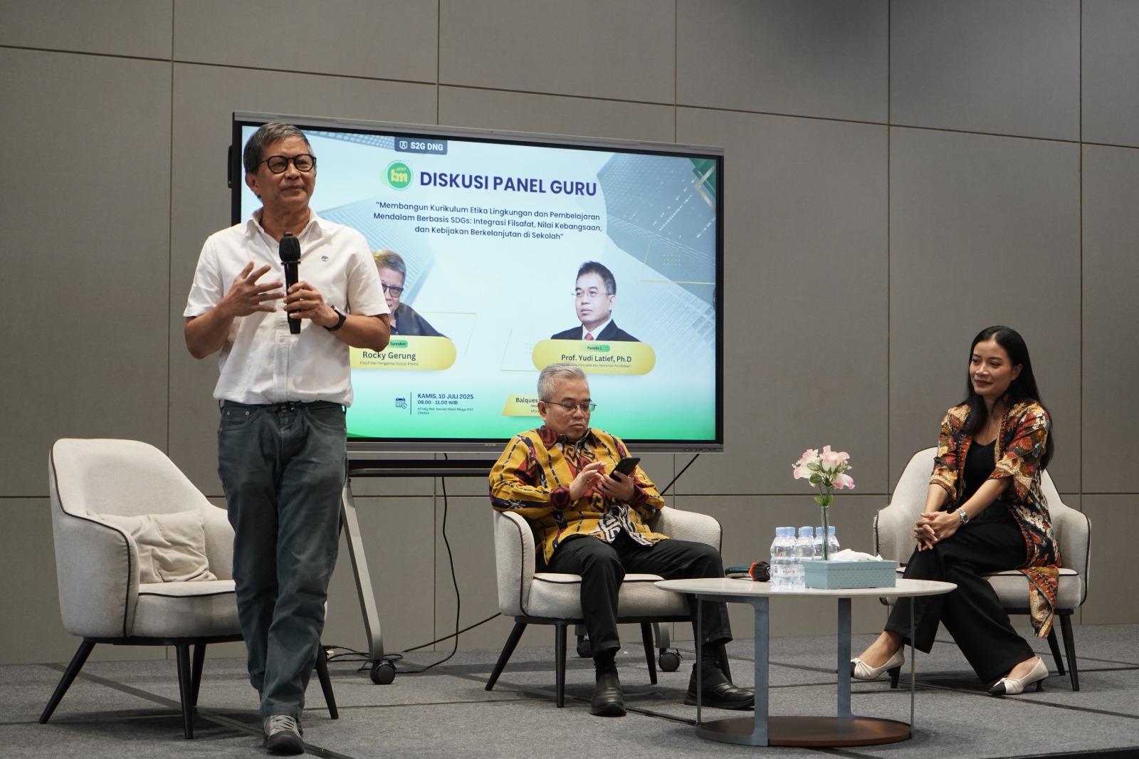 Cibubur – Filsuf publik Rocky Gerung menyerukan pentingnya memasukkan etika lingkungan ke dalam kurikulum sekolah sebagai langkah mendesak menjawab krisis ekologis global. Hal ini disampaikan dalam diskusi panel bertajuk “Membangun Kurikulum Etika Lingkungan dan Pembelajaran Mendalam Berbasis SDGs: Integrasi Filsafat, Nilai Kebangsaan, dan Kebijakan Berkelanjutan di Sekolah”, yang digelar di Invinity Hall Sekolah Bakti Mulya (BM) 400 Cibubur, Kamis (10/7/2025).