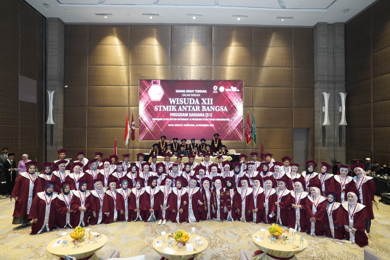 Milenianews.com, Tangerang — STMIK Antar Bangsa, Tangerang, menggelar Sidang Senat Terbuka Wisuda Sarjana ke-12 dengan meluluskan wisudawan dari Program Studi Teknik Informatika dan Sistem Informasi. Acara berlangsung khidmat dan dihadiri sejumlah tokoh nasional, Ahad (30/11/2025).
