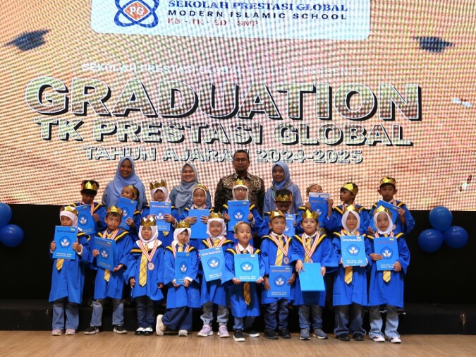 Acara graduation ini ditutup dengan prosesi pelepasan siswa TK B secara simbolis, pemberian medali kelulusan, dan sesi foto bersama sebagai kenang-kenangan. Graduation kali ini menjadi momen penuh makna yang menghangatkan hati dan mempererat tali silaturahmi antara sekolah dan keluarga besar TK Prestasi Global.