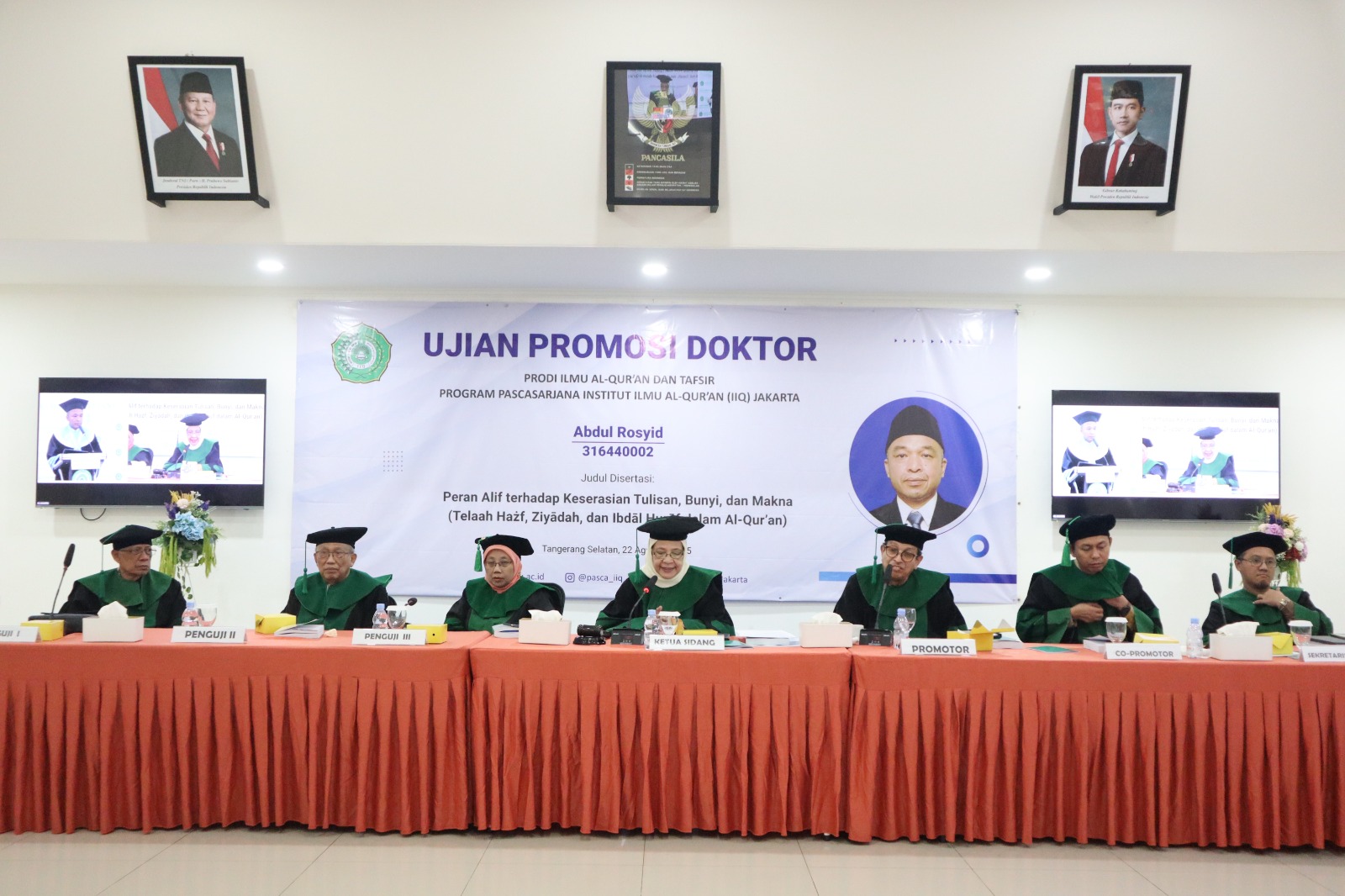 Ujian promosi doktor ini dipimpin oleh Promotor Prof. Dr. Said Agil Husin Al-Munawar dan Co-Promotor Dr. Muhammad Ulinnuha, serta dihadiri oleh dewan penguji: Dr. Artani Hasbi, KH Ahmad Fathoni, dan Dr. Romlah Widayati.