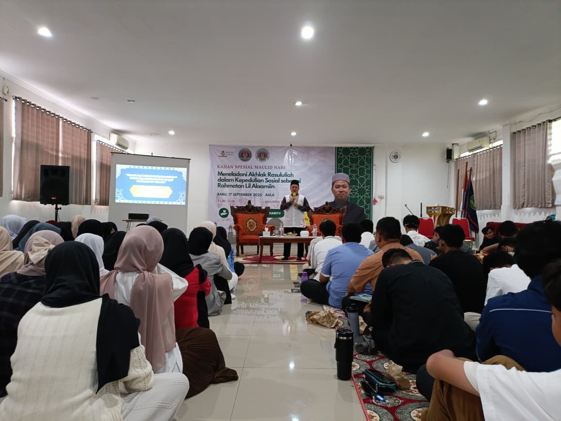 Milenianews.com, Bogor– Aula SMA Bina Insani, Bogor, dipenuhi suasana khidmat pada Rabu, 17 September 2025. Siswa-siswi, dewan guru, dan orang tua yang tergabung dalam Parent Association Bosowa Bina Insani (PABBI) berkumpul untuk mengikuti Kajian Spesial Maulid Nabi Muhammad SAW dengan tema “Meneladani Akhlak Rasulullah dalam Kepedulian Sosial sebagai Rahmatan Lil’alamin”.