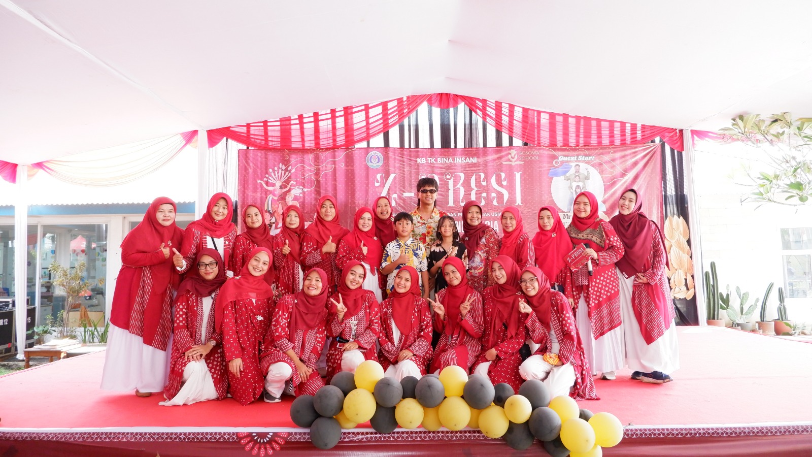 Acara X-presi KB-TK Bina Insani dihadiri kepala SD, SMP, dan SMA Bina Insani. Selain itu, ketua Komite Sekolah (PABBI) TK, SD, SMP, dan SMA Bina Insani, Pengurus Yayasan Bosowa Bina Insani dan jajarannya, pelatih seluruh ekstrakurikuler, orang tua peserta didik, serta Mr. Popolo, Raga, dan Lika.