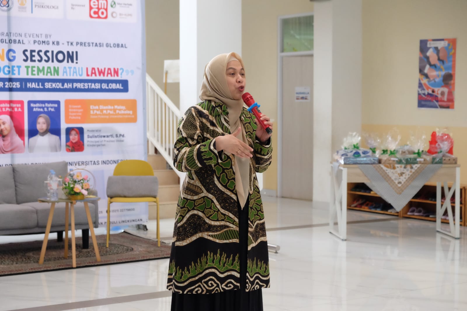 Sementara itu, Ketua POMG KB–TK Prestasi Global, Bunda Imas Putri, bersama Tim POMG selaku penyelenggara menyampaikan harapan agar kegiatan ini dapat menjadi ruang belajar bersama yang berkelanjutan. “Kami berharap melalui Parenting Session ini, orang tua semakin bijak dalam mendampingi anak menggunakan gadget, serta mampu membangun komunikasi yang hangat dan berkualitas di lingkungan keluarga,” tuturnya.