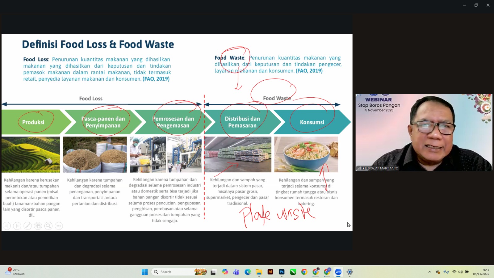 Pakar Gizi IPB University, Prof. Drajat Martianto, menambahkan bahwa food loss dan food waste merupakan paradoks besar di tengah persoalan stunting di Indonesia. “Kerugian akibat pangan terbuang mencapai Rp 231–551 triliun per tahun atau 4–5 persen dari PDB (produk domestik bruto) nasional. Gizi yang terbuang sebenarnya bisa menyelamatkan banyak orang,” jelasnya.