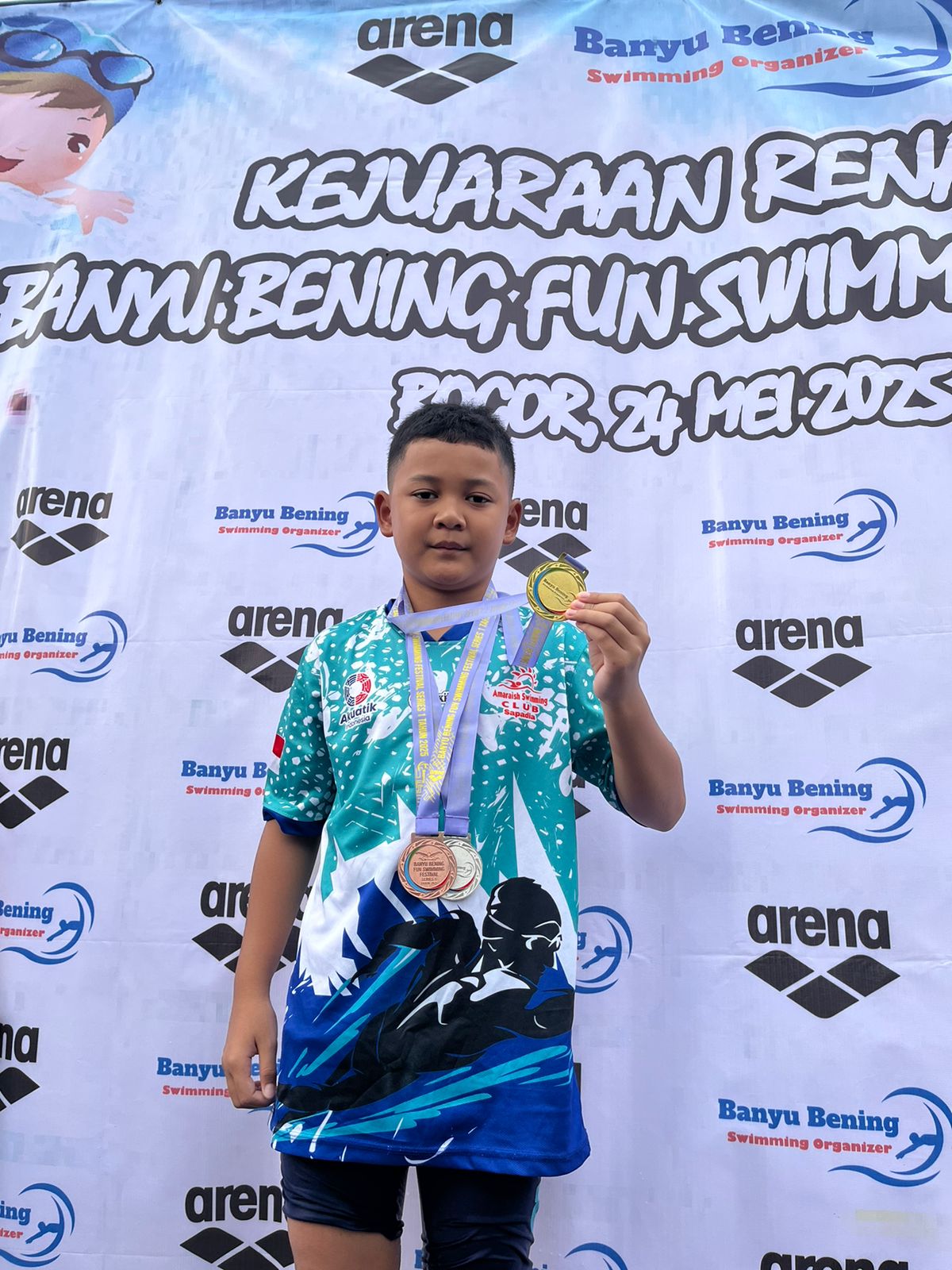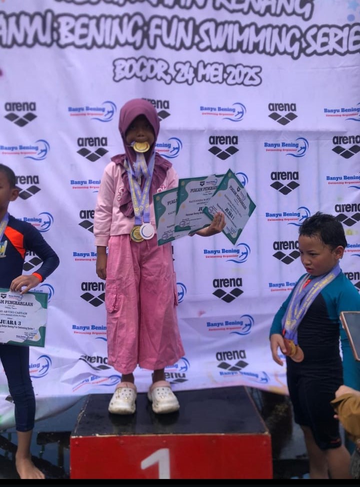 Milenianews.com, Bogor–Tiga Pelajar SD IT Dinamika Umat, Telaga Kahuripan, Bogor, Jawa Barat, memborong medali di Kejuaraan Renang Banyu Bening Fun Swimming Series 1, Sabtu (24/5/2025).